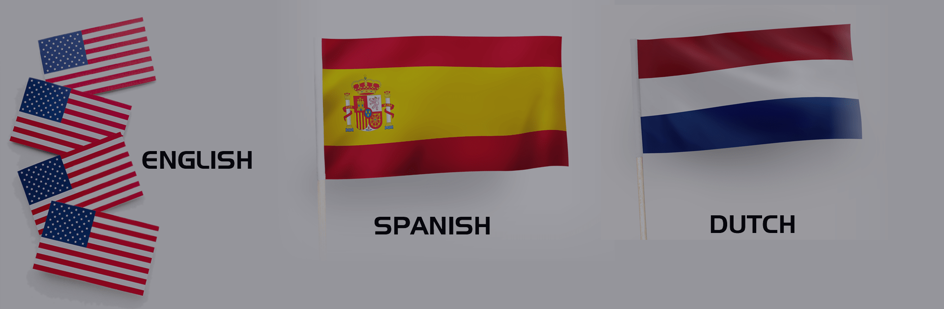 SPANISH, ENGLISH, DUTCH.